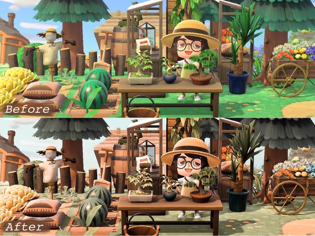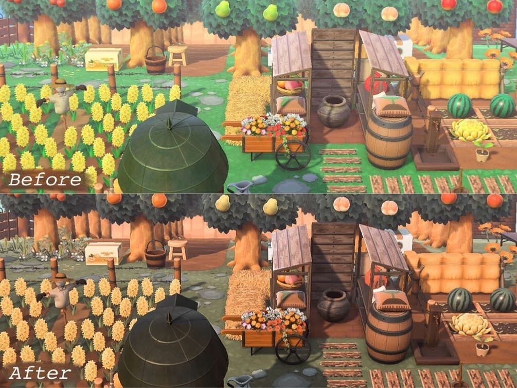 Pumpkin Spice is a warm, dramatic preset that makes golds, oranges and browns pop, and deepens and mutes greens to a lovely sage tone. It's perfect for that natural, rustic vibe. It is designed to make your screenshots look the very best by smoothing edges and bringing out the most detail in your pictures. It is a one-step edit to bring all your ACNH photos to life.
