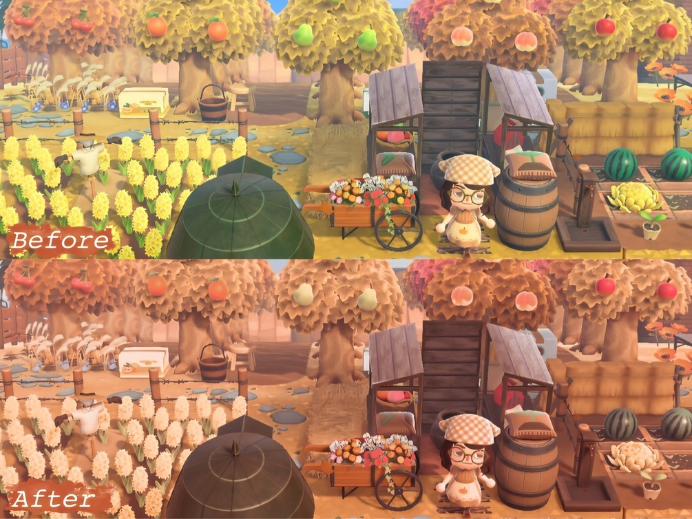 Cider is a rust tinted preset that gives your pictures a homey, vintage feel. Golden tones come to life, reminiscent of a hot apple cider. This preset is perfect for Autumn pictures, but looks great on all seasons. It is designed to make your screenshots look the very best by smoothing edges and bringing out the most detail in your pictures. It is a one-step edit to bring all your ACNH photos to life.